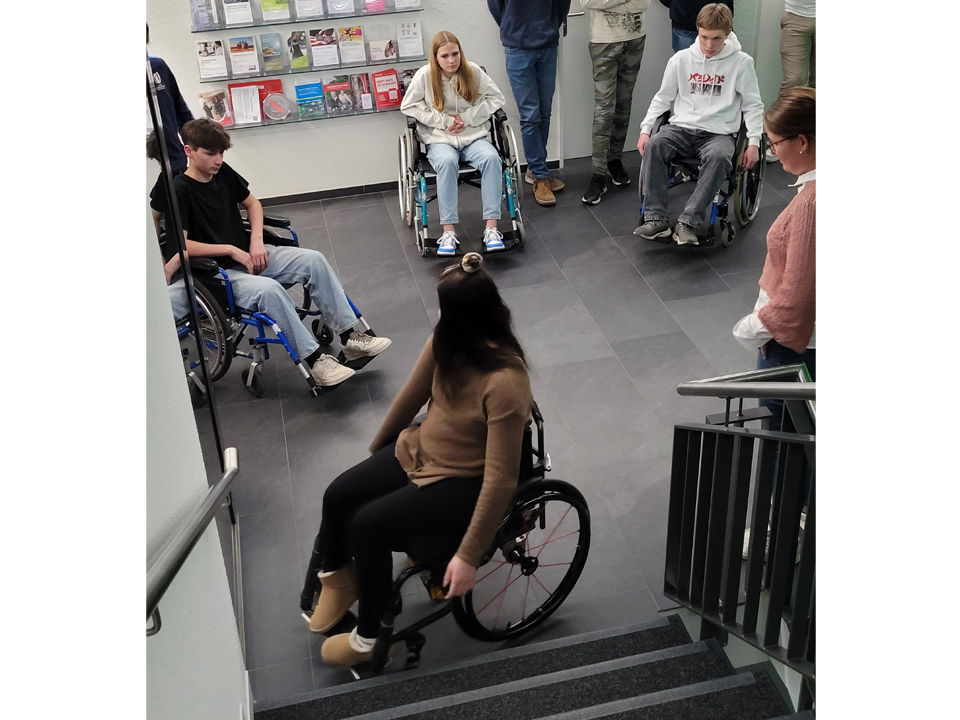 Die Jugendlichen durften anschliessend selbst in einen Rollstuhl sitzen und alles Mögliche ausprobieren. Von Fahrstuhlfahrt bis Küchenarbeiten war alles dabei.