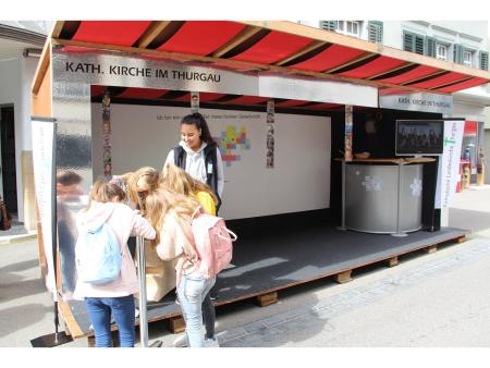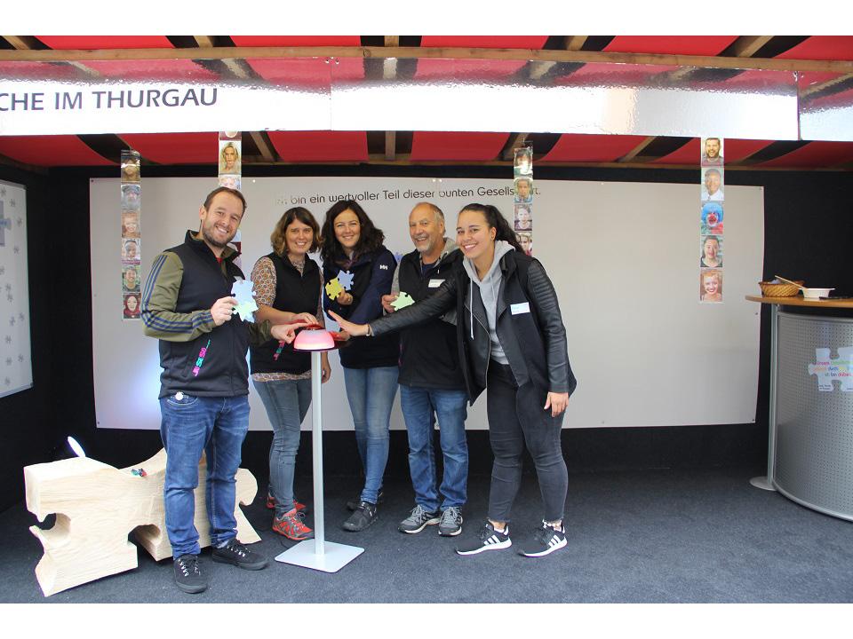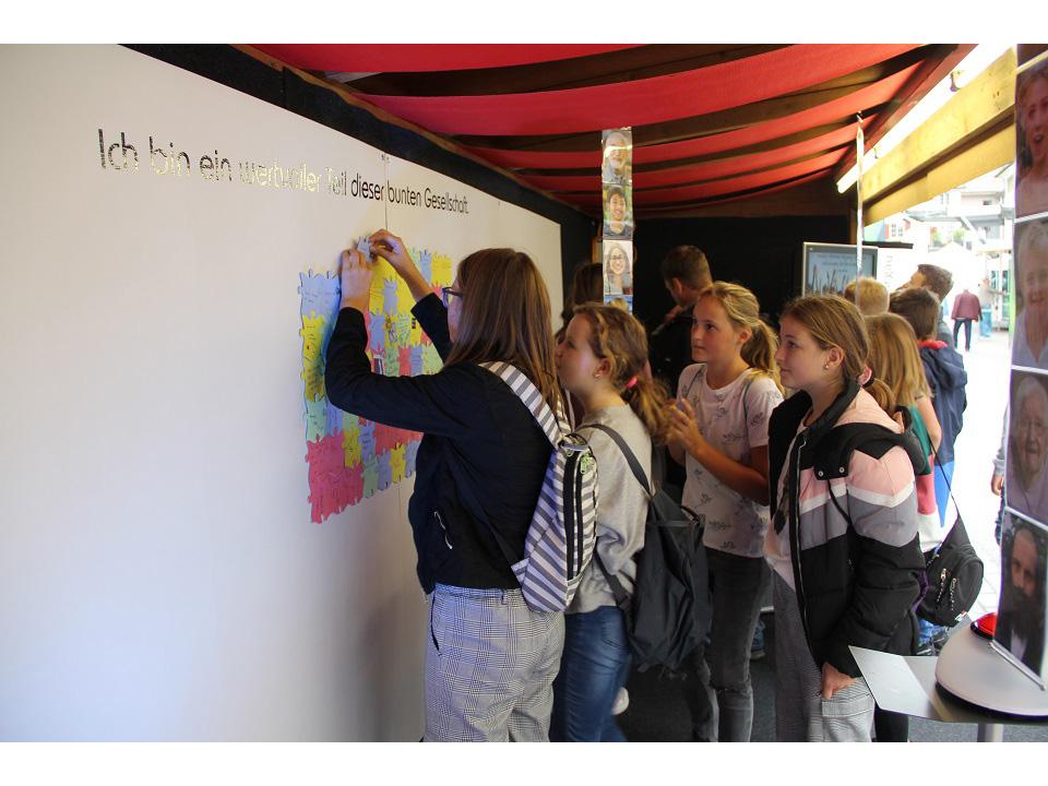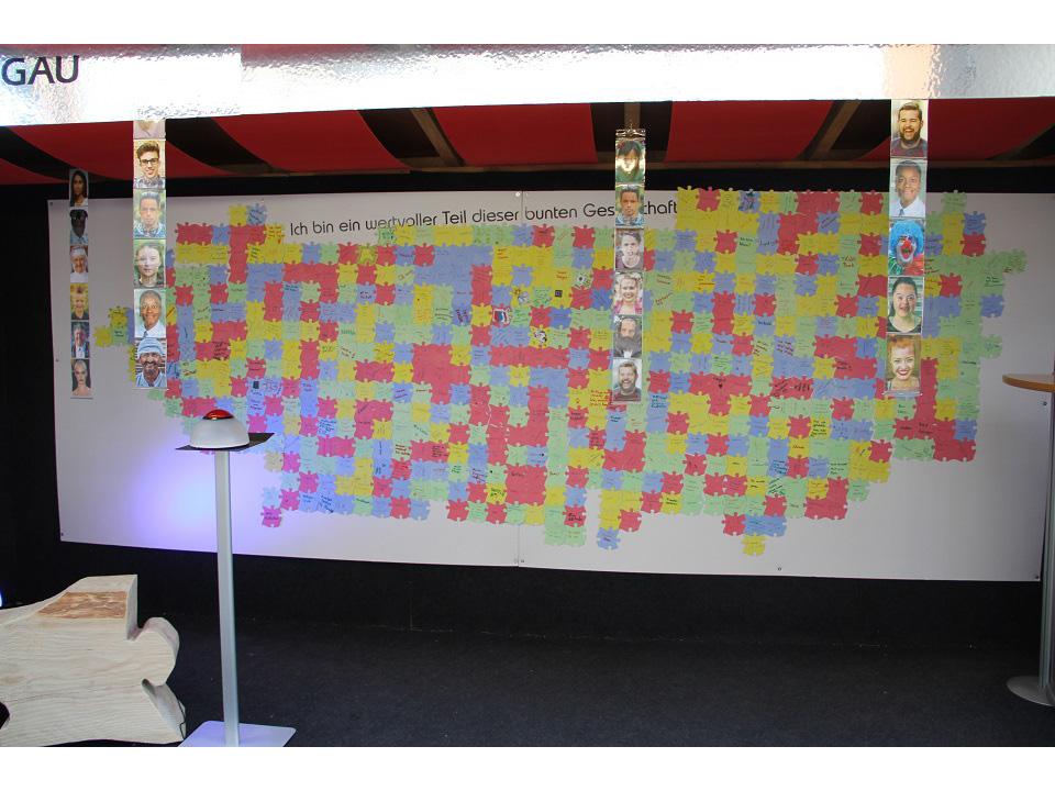 Bereits zum achten Mal brachten sich die Mitarbeitenden der JUSESO in unkonventioneller Weise auf der Gewerbeschau ein und regten Besucherinnen und Besucher an, sich über wichtige Lebensthemen Gedanken zu machen. Dieses Jahr waren es bunte Puzzleteile, die zum Nachdenken motivieren sollten, und zwar über die eigenen Fähigkeiten und wie diese die Gesellschaft bereichern können. Mit jedem vorgeschrittenen Tag wuchs das Puzzle und die Rückwand wurde immer bunter.
