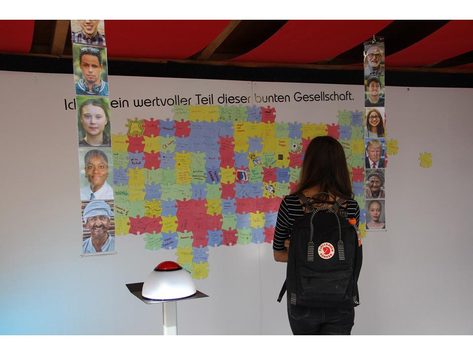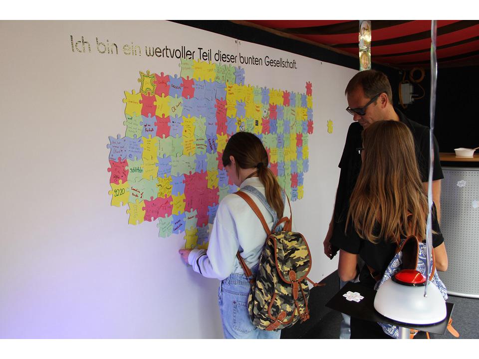 Was macht mich besonders? Und wo braucht es mich in unserer Gesellschaft? Über diese Fragen konnten sich Besucherinnen und Besucher der WEGA am Stand der JUSESO Gedanken machen und dies auf einem Puzzleteil festhalten.