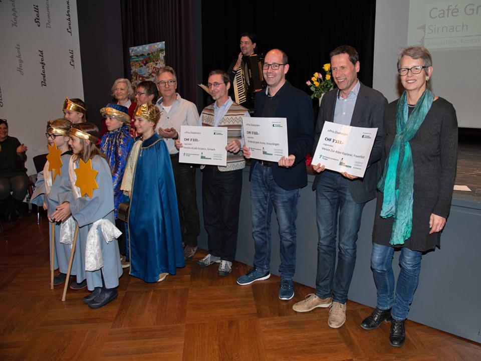 Drei Könige – drei PreiseIn der Jury war die SRF-Korrespondentin Henriette Engbersen, die Regionalverantwortliche des Bistums, Margrith Mühlebach, die beiden Kirchenratspräsidenten, Wilfried Bührer und Cyrill Bischof, Regierungsrätin Cornelia Komposch und Kantonsrat Turi Schallenberg. Diese Zusammenarbeit zwischen Kirche und Staat im Bereich der Diakonie hat Beispiel-Charakter. «Manchmal kommen auch die Thurgauer den Zürchern in einer Sache zuvor», meinte Christoph Sigrist, Pfarrer am Grossmünster und Professor für Diakoniewissenschaft in seiner Ansprache. Symbolisch und passend zur Jahreszeit überbrachten die Sternsinger Eschlikon-Wallenwil die Namen der drei Preisträgerprojekte. Zudem trug der Akkordeonist, Goran Kovacevic, mit seinen virtuosen Zwischenspielen viel zur berührenden Stimmung des Abends bei.